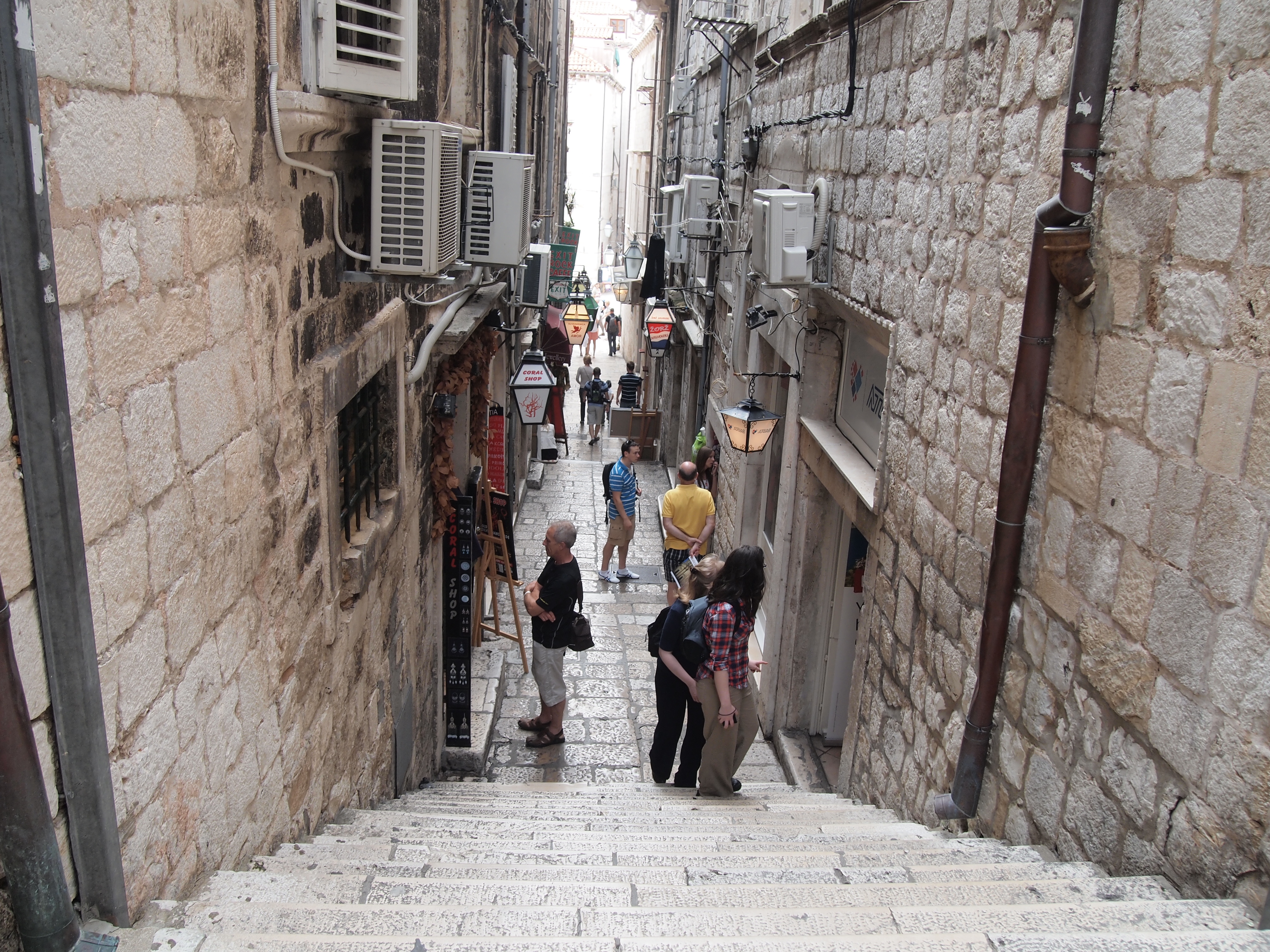 メインストリート:プラツァ通りが300mまっすぐ通っており、そこから南北に細い通りが伸びています。プラツァ通り沿いはレストランやお土産屋などが多くあり、ピレ門のすぐそばにはフランシスコ修道会、通りを東に向かって歩いたさきにはオノフリオの噴水など、歴史的建造物も多いです。